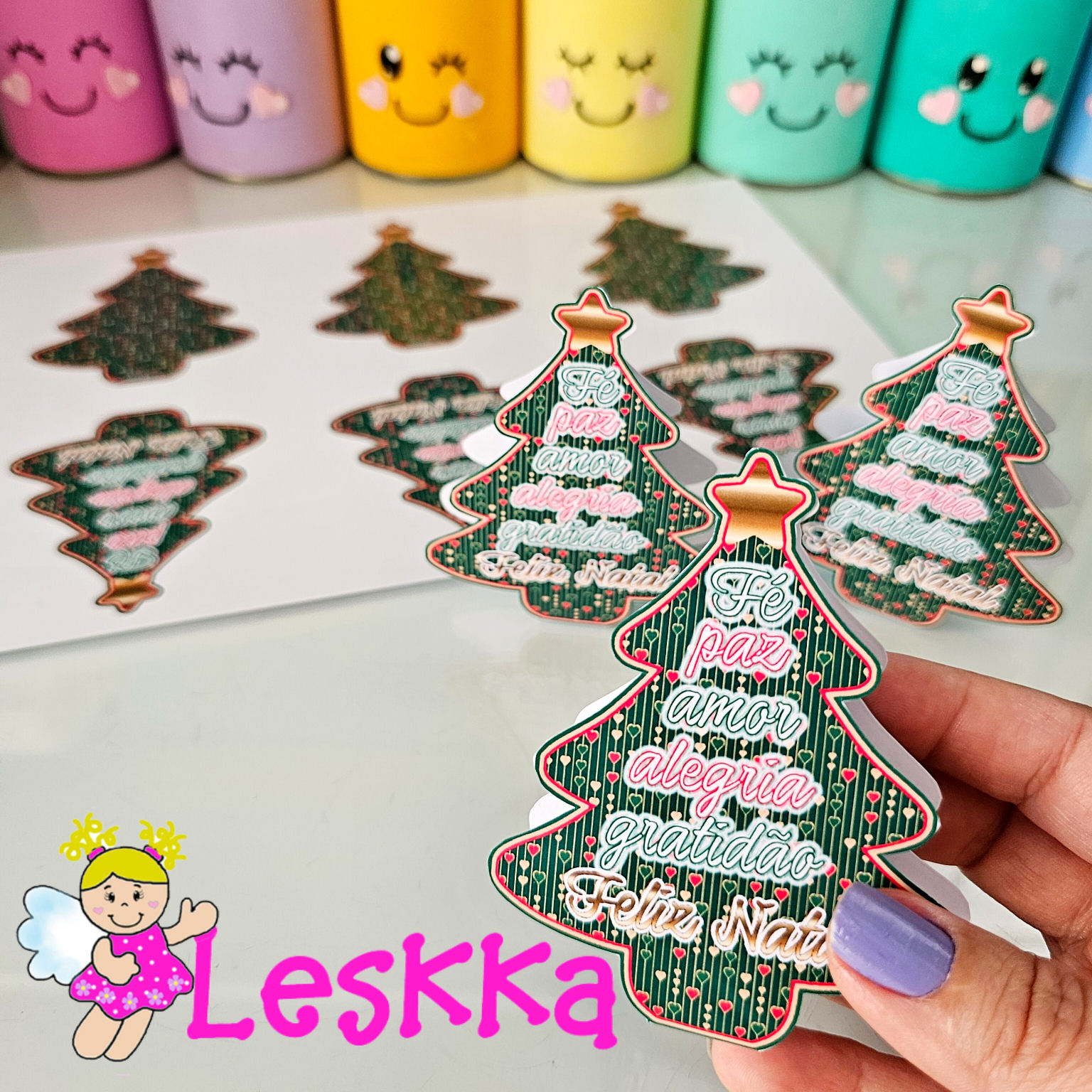 Arquivo em pdf com 1 página para fazer árvores de natal e colocar um chocolate Bis