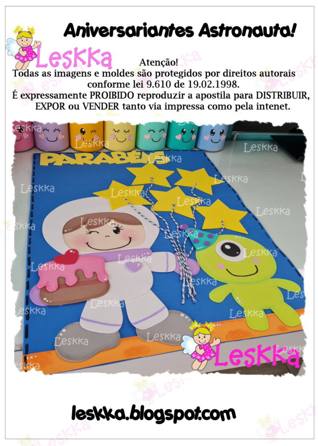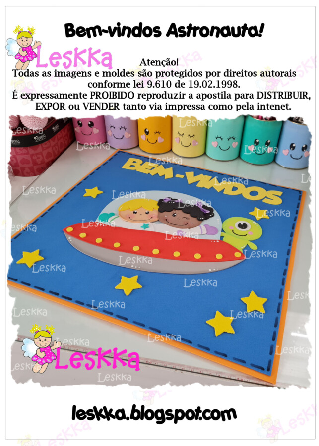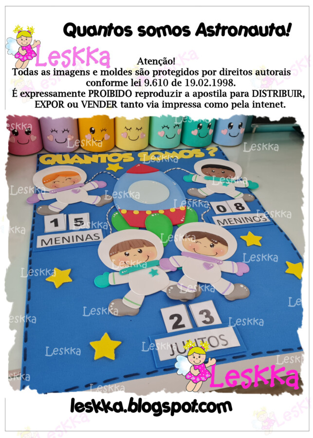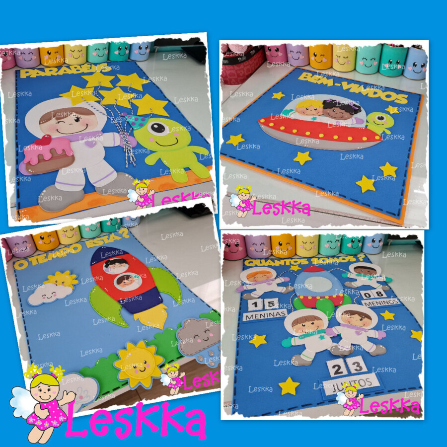 Combo em pdf com 17 páginas com 4 apostilas de moldes para fazer cartazes escolares no tema ASTRONAUTA.