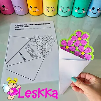 Arquivo digital em pdf com 1 página para imprimir, colorir, recortar e montar um cartão para o dia da mulher. Um presente pra você!