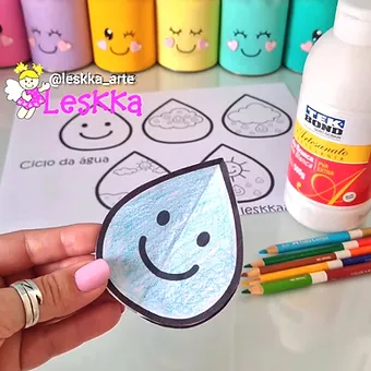 Arquivo digital em pdf com 1 página para imprimir, colorir, recortar e montar um livrinho intertivo sobre o ciclo da água. Um presente pra você!