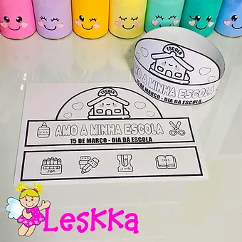 Arquivo digital em pdf com 1 página para imprimir, colorir, recortar e montar uma coroa para comemorar o dia da escola. Um presente pra você!