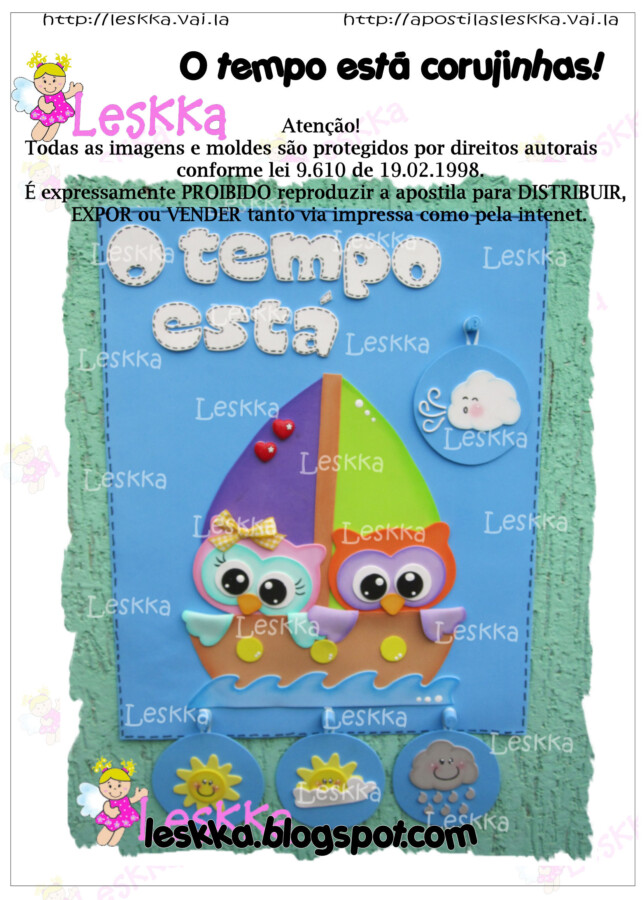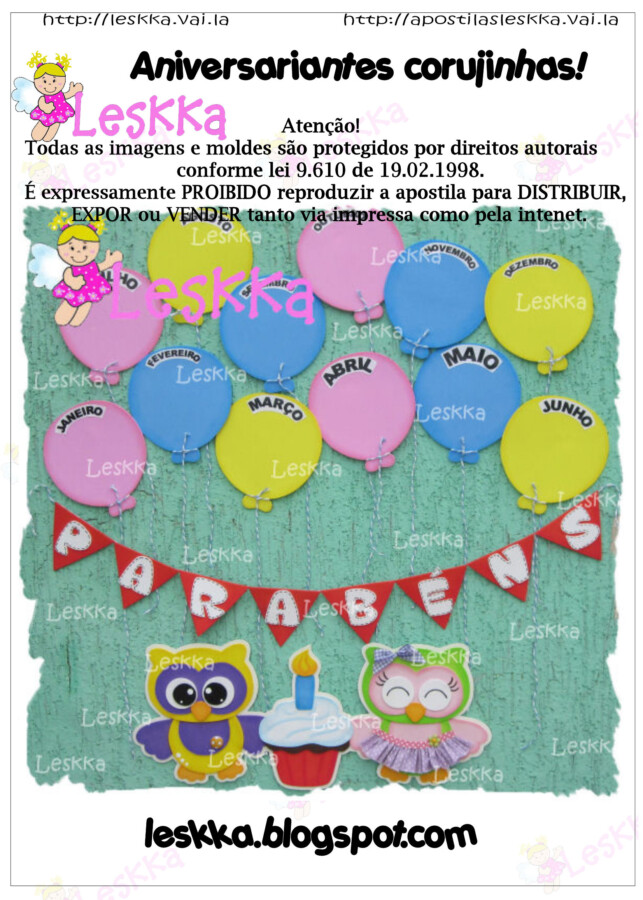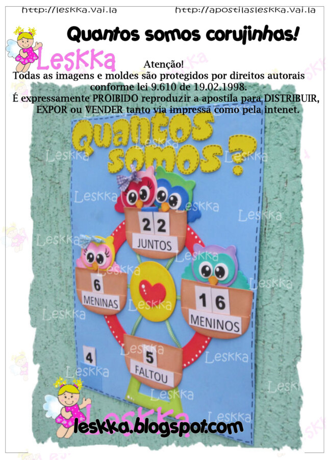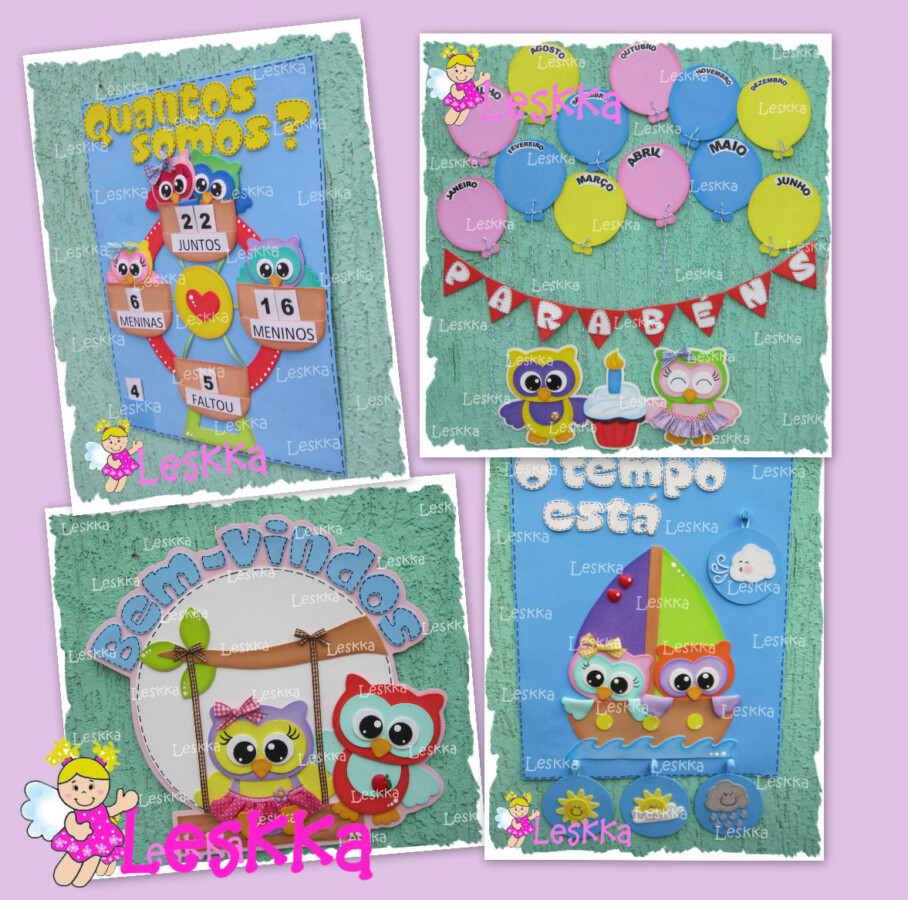 Combo em pdf com 24 páginas com 4 apostilas de moldes para fazer cartazes escolares no tema CORUJINHAS.
