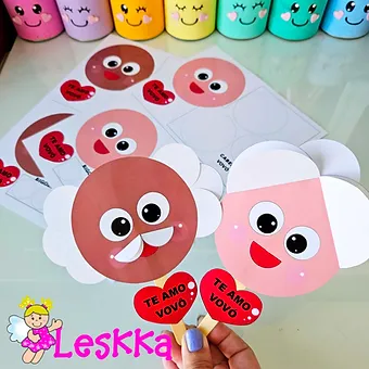 Arquivo pdf com 3 páginas para você imprimir, recorta e montar o palitoche do vovô e da vovó.