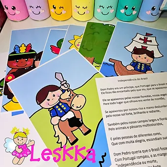 Arquivo pdf com 9 páginas, para contar o poema ilustrado Independência do Brasil de Valeska Braga.