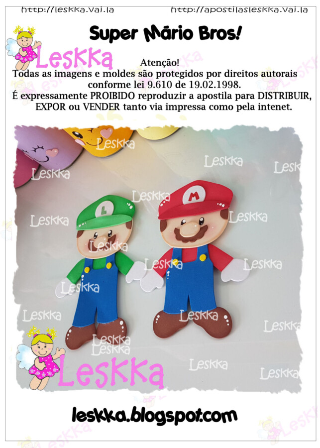 Arquivo pdf com 11 páginas para fazer os personagens ( Mário e Luigi) para fazer em dois tamanhos (para fazer capas e para fazer mural).