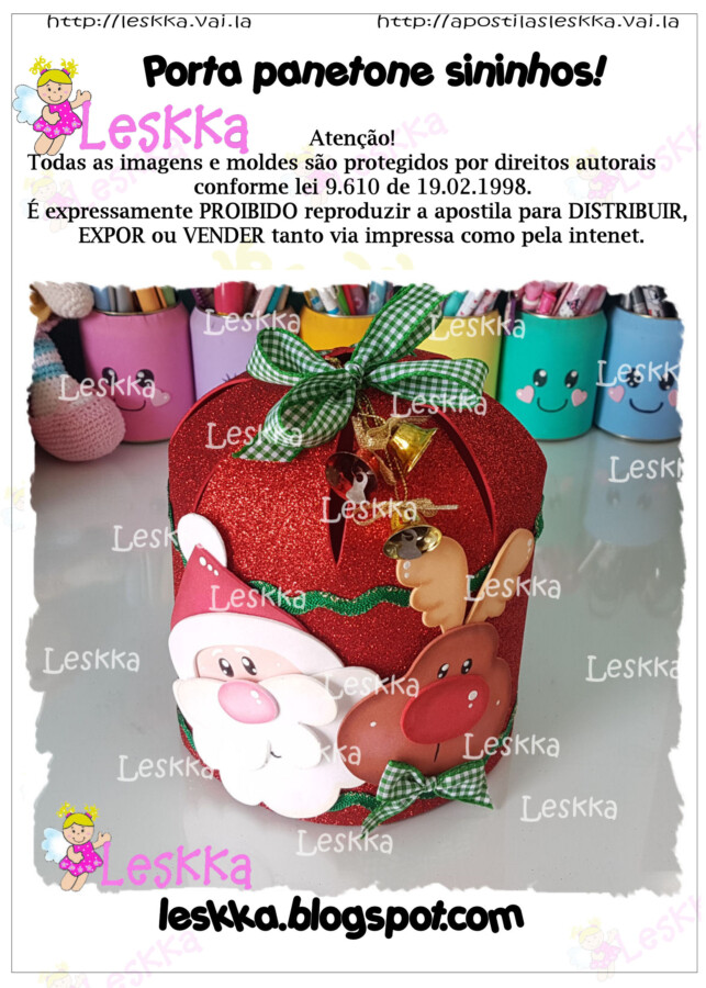 Arquivo pdf com 3 páginas com moldes para fazer o porta panetone