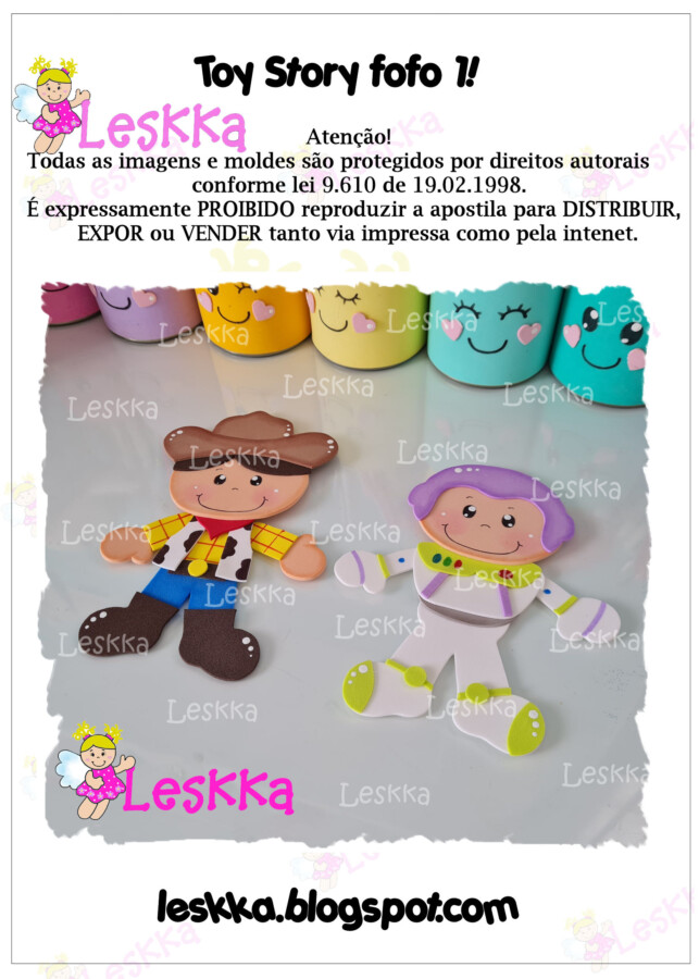 Arquivo pdf com 11 páginas para fazer os personagens ( Buzz e Woody) para fazer em dois tamanhos (para fazer capas de caderno e mural).